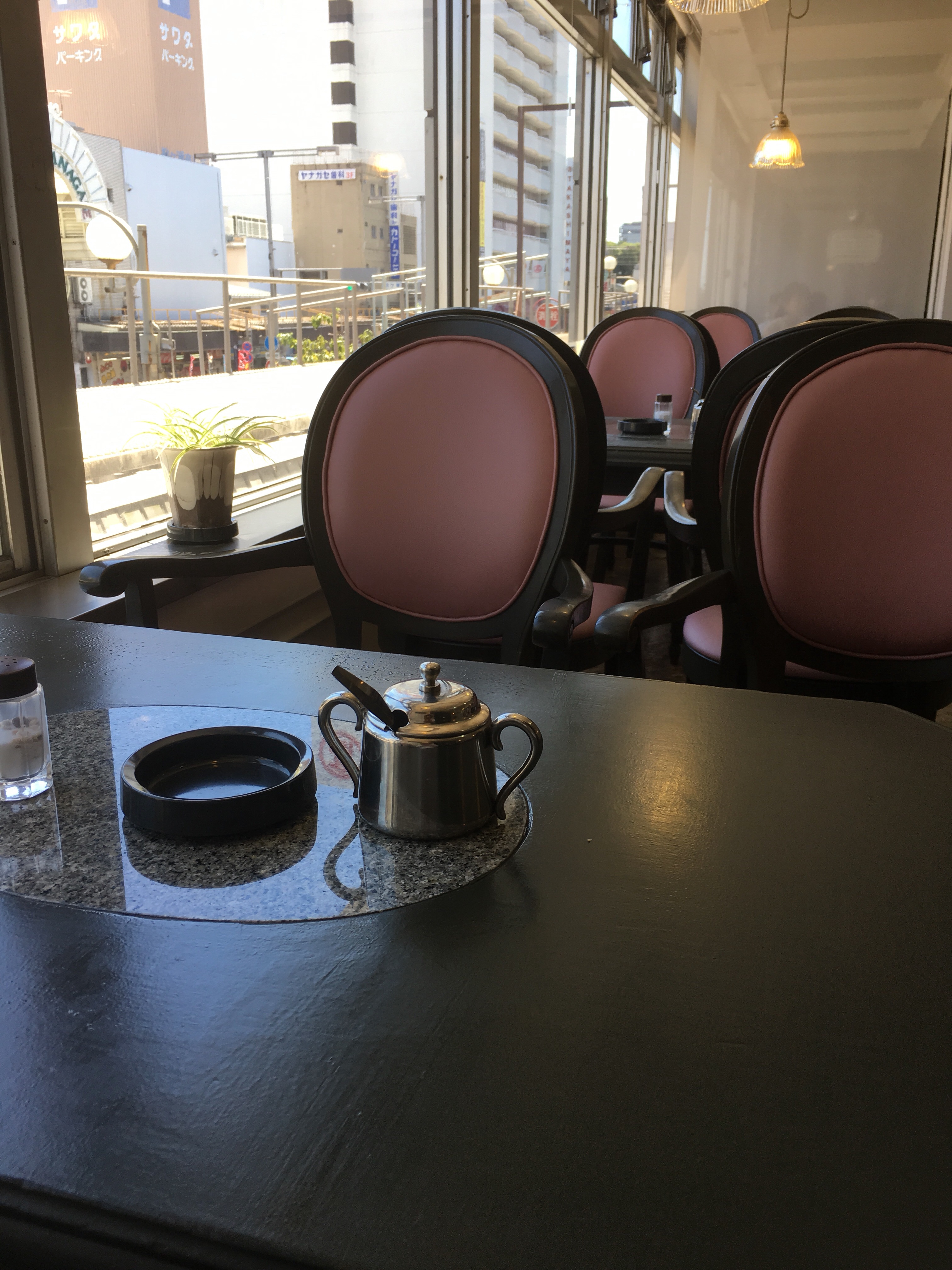 果物店横のやや薄暗い階段を登り喫茶室のドアを開けると