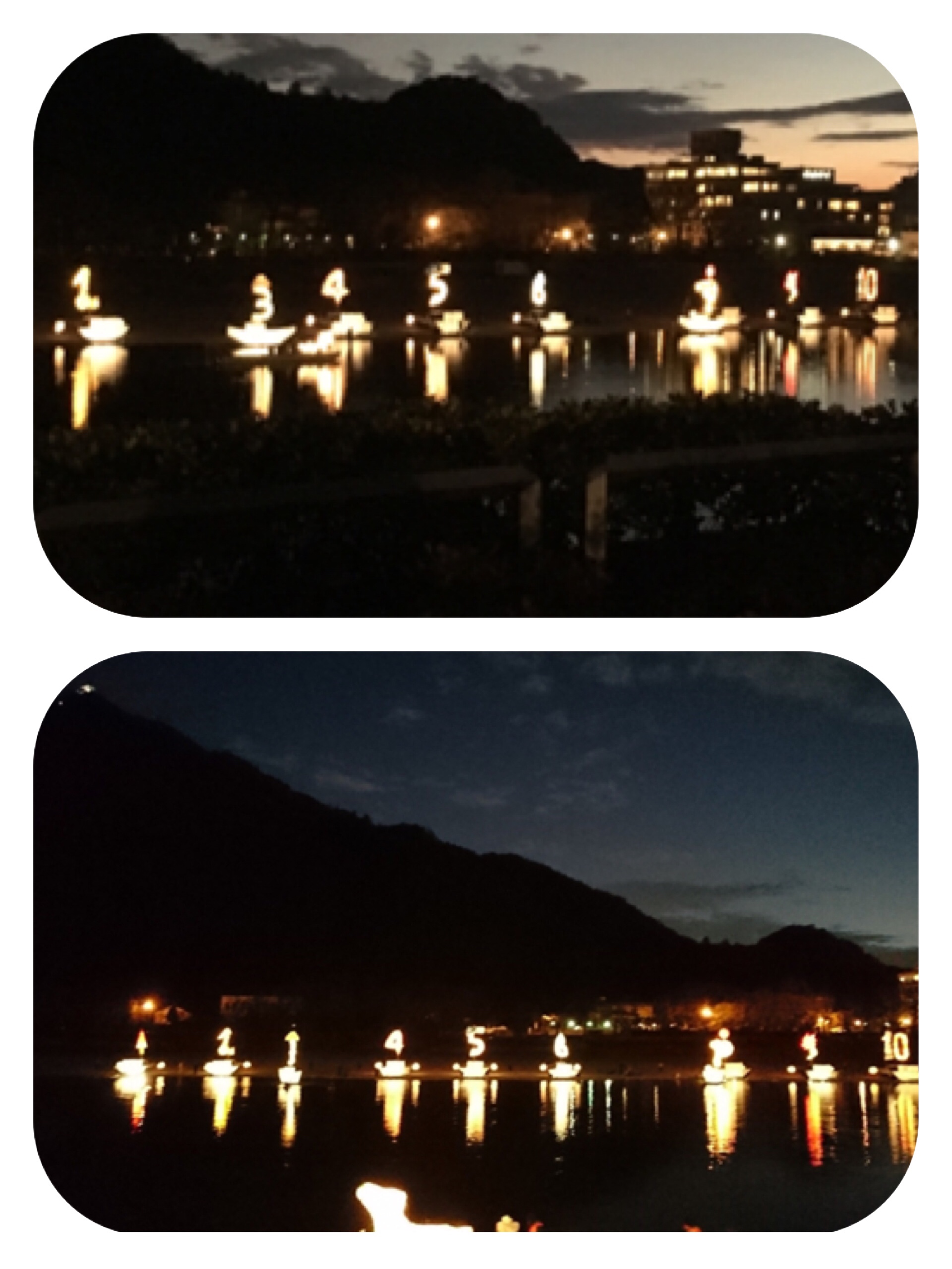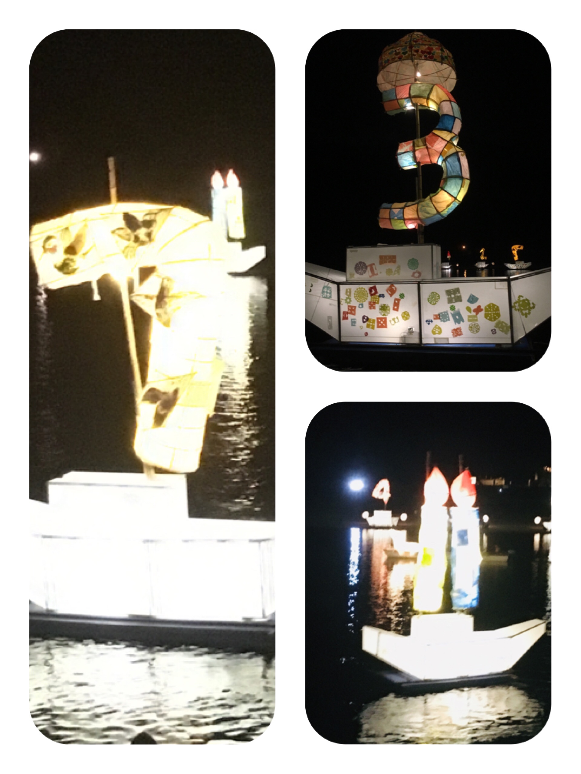 1から12月をかたどった数字の行灯と干支の行灯を美濃和紙で作り浮かべる