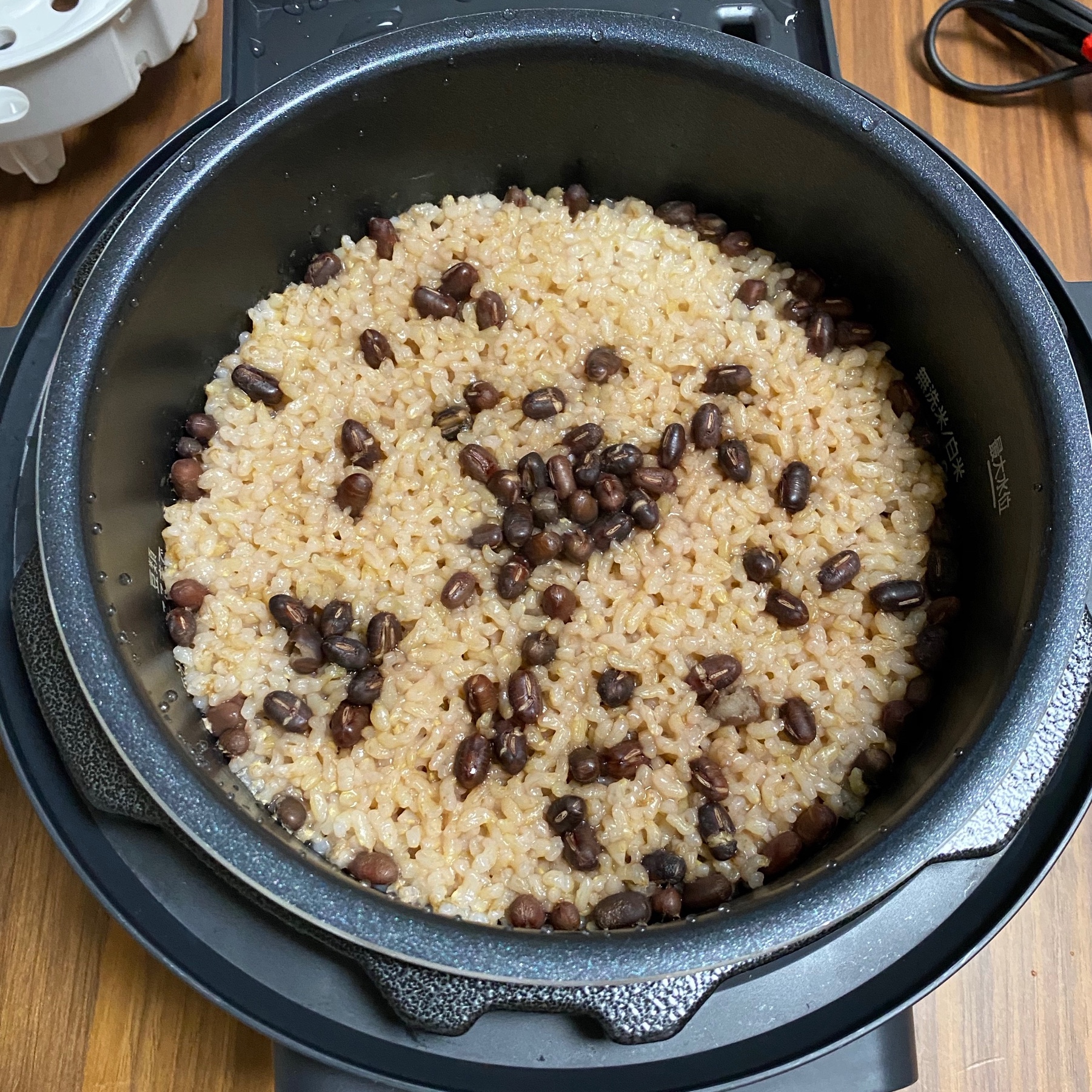 玄米と小豆を炊いて発酵させる発酵玄米が