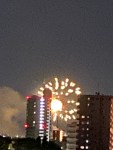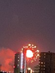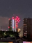 ビルの谷間だがとりあえず今年も花火が見れて満足