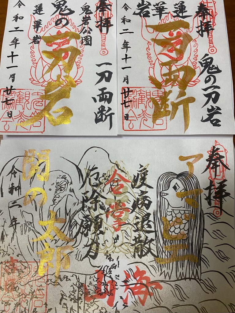 鬼滅の刃で評判「蓮華岩」の御朱印作成 金色の文字で「一刀両断」