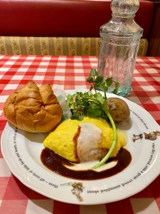 ランチは久々ラケルのオムライス、この炭水化物and炭水化物、でもバターじゅわパンは外せない