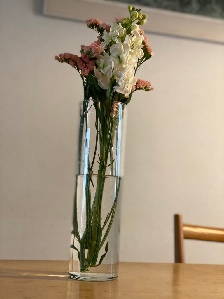 すぐ借りれる本を2冊選び、スーパーで安価なお花を連れ帰る