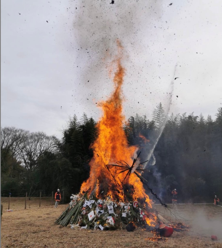 塞の神(どんと焼き)、こちらでは毎年の地域の伝統行事として大切に行われている