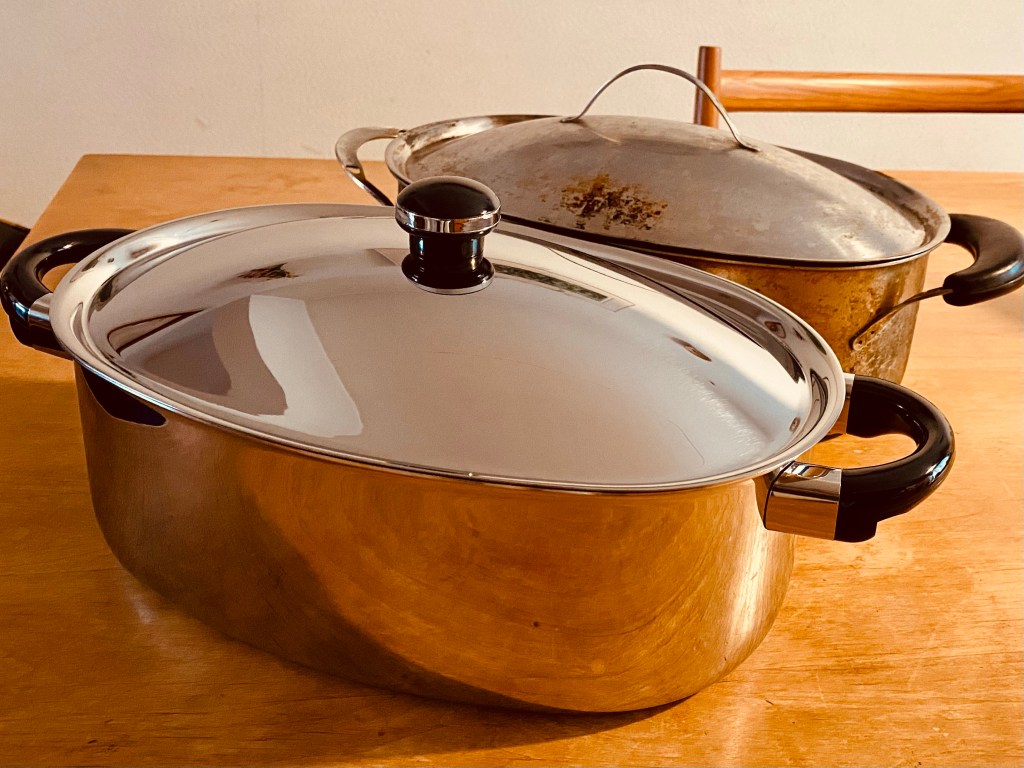 20数年、使い続けた愛用のお鍋、磨いても焦げが取れず、持ち手も取れて、傷心に鞭打ち使い続けていた