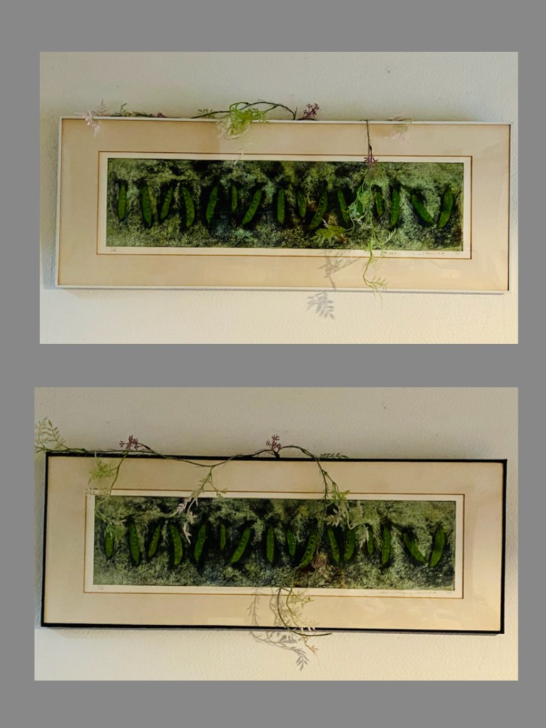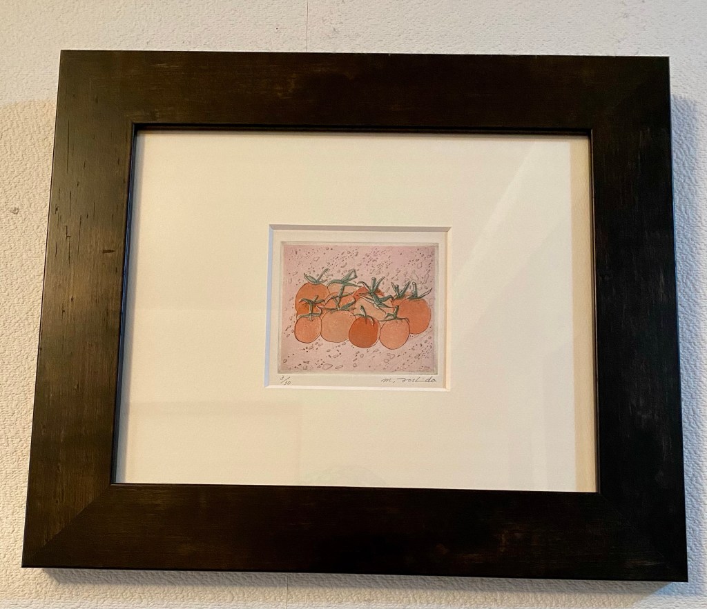版画家の友人の作品を室内に飾っているが、額装のマットが色褪せ、小作品はネットでカスタムオーダーし、マットと額縁を交換