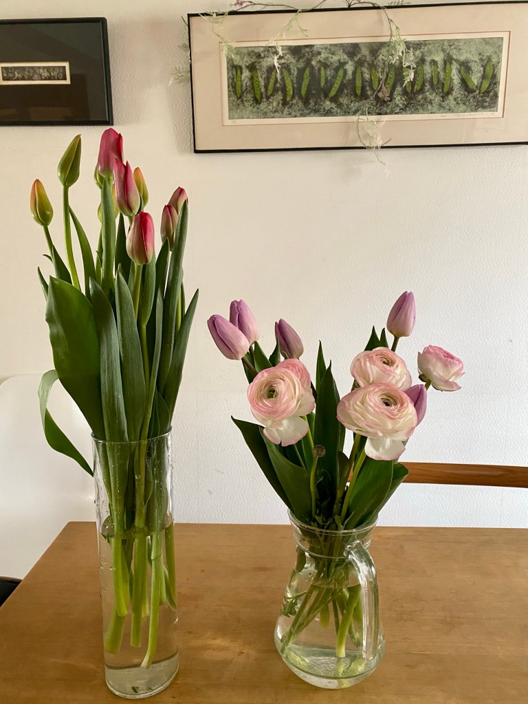 チューリップは15本で1000円台とお得、明日はしばらく会えなかった都心に住む娘とバレンタインのお菓子作り予定、新参オーブンはすっかり使いこなせるようになったし楽しみ!