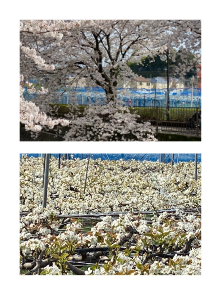 桜の向こうには、近隣の名産、梨の花も咲き誇る