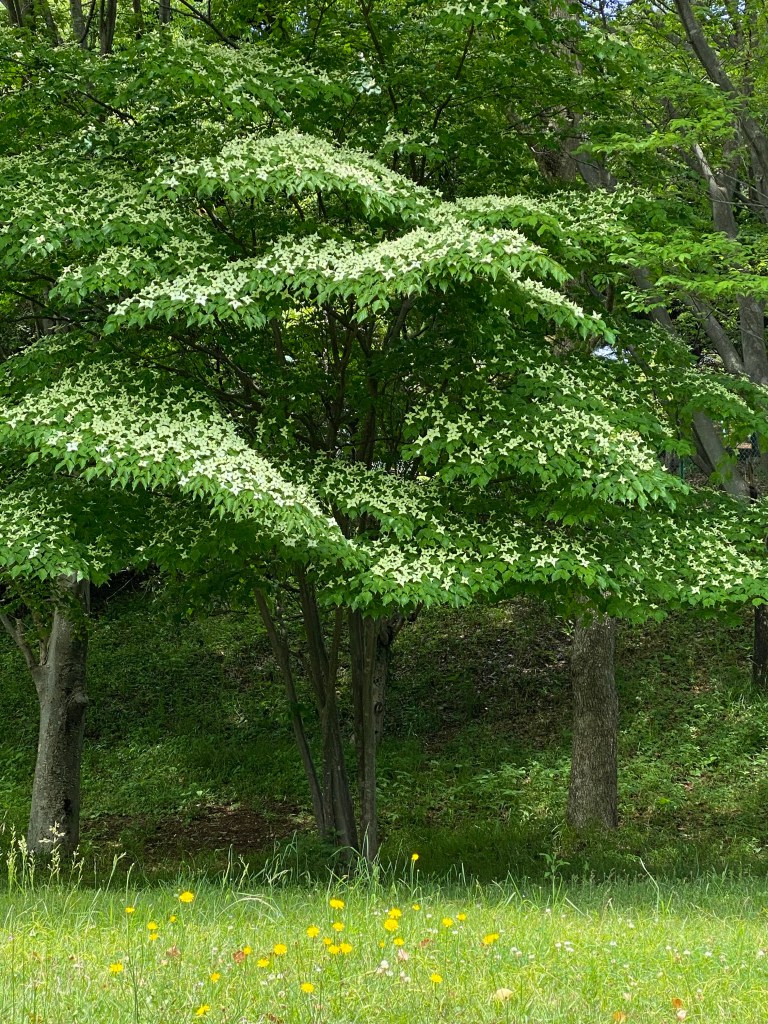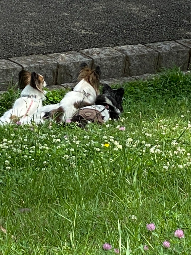 ワンちゃん達も花に囲まれて気持ちよさげ