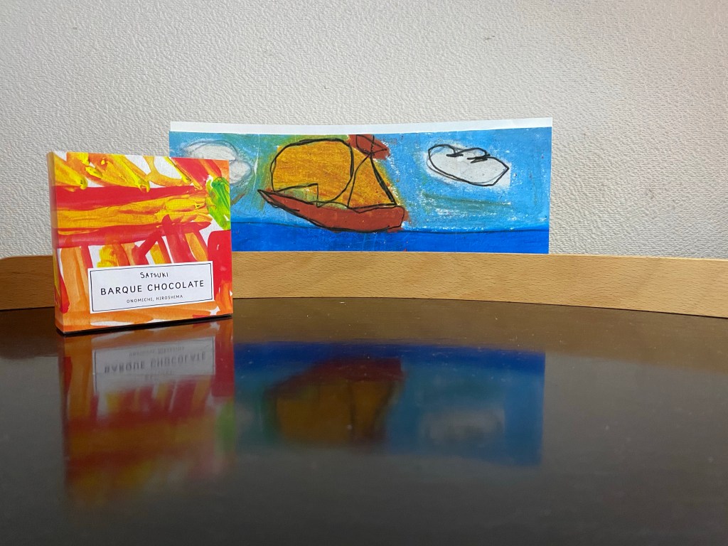 インテリアも少し模様替え、尾道の作業所のピールチョコレートのパッケージが素敵だったので丁寧にラベルを剥がし、ボール紙で補強してポストカードラックに立ててみた