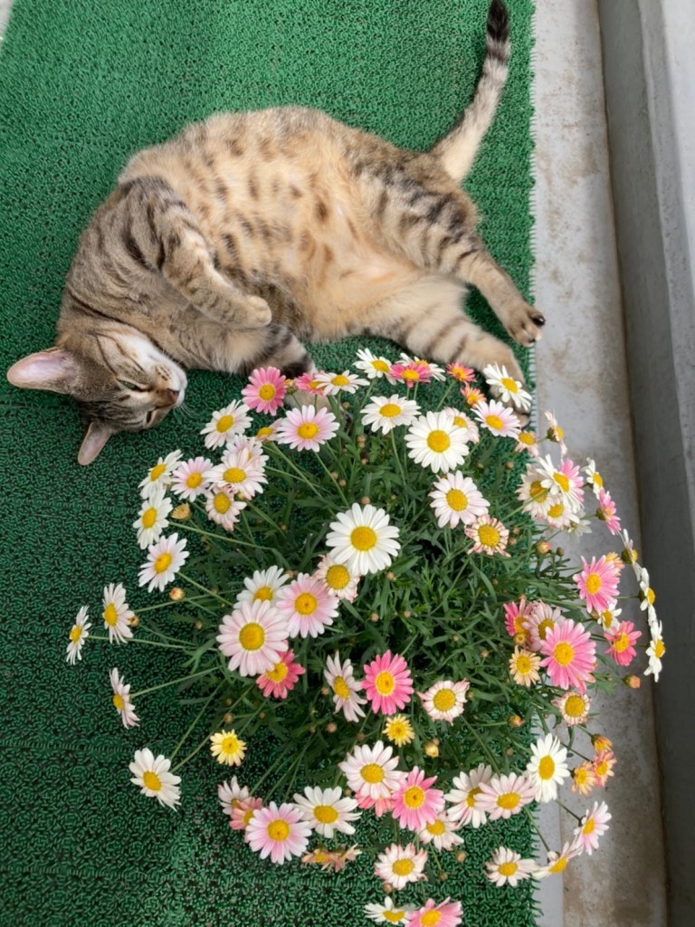 三匹のネコはすぐ慣れて私を取り囲み様子を見ている