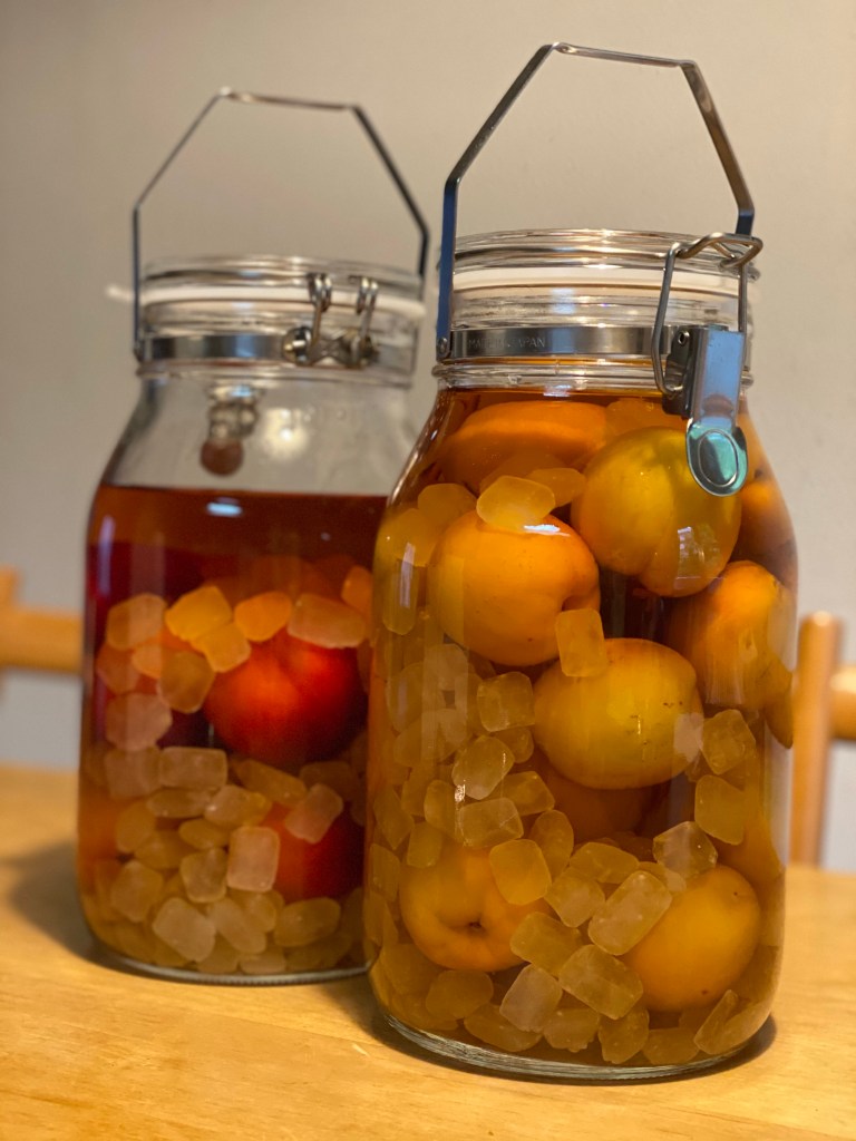 梅酒はリカーに漬けたので、すももと杏をブランデーに