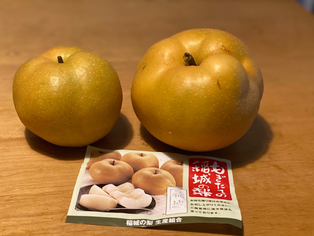 通勤の時には並んでいる梨も帰りには売り切れで、でも大きくて職場まで往復は持ちきれず…今日は休みだったのでようやく連れ帰る