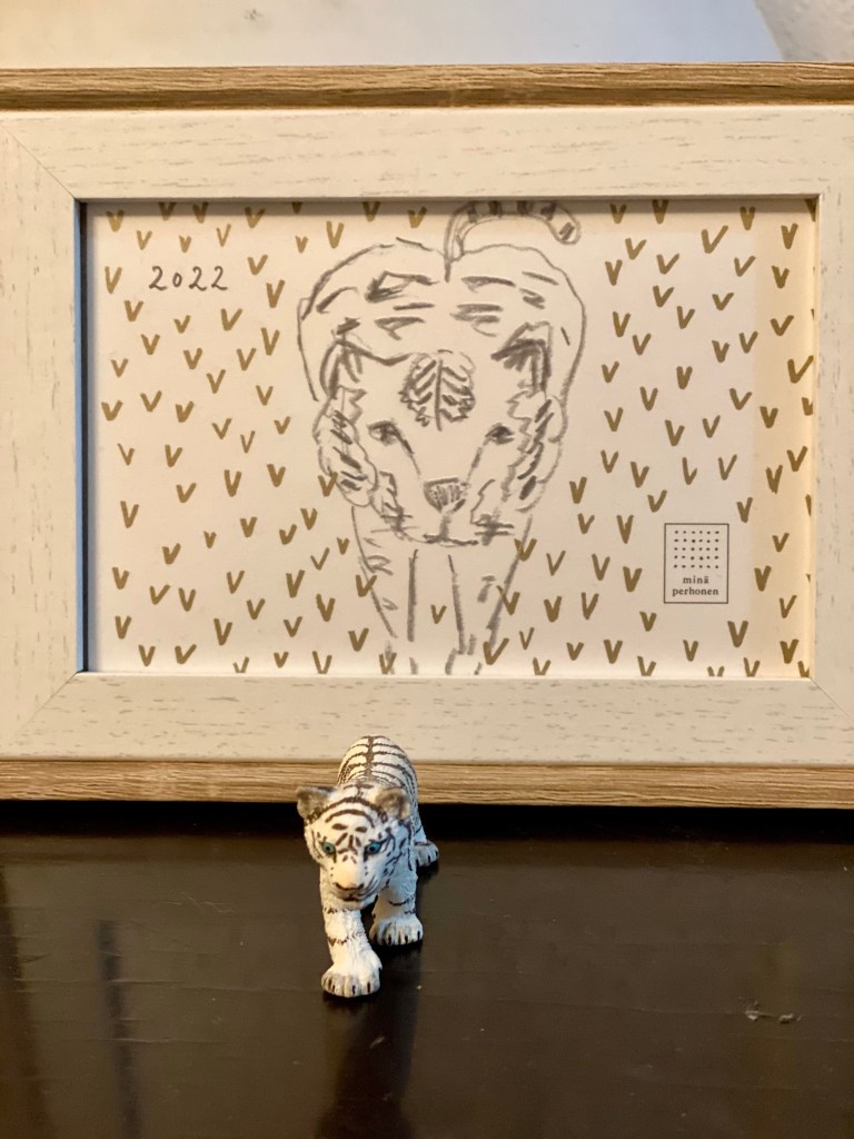ミナペルホネンで頂いた年賀状と飾ると今年風