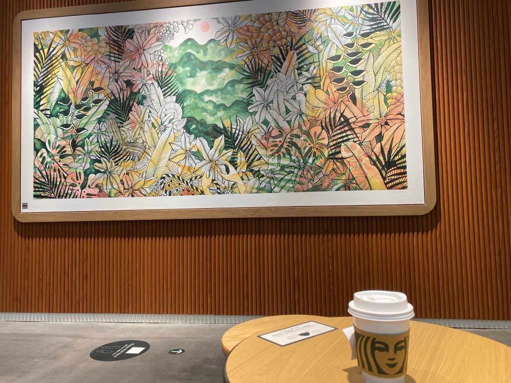 この近所のスタバは最近オーブンしたので密ではない席配置