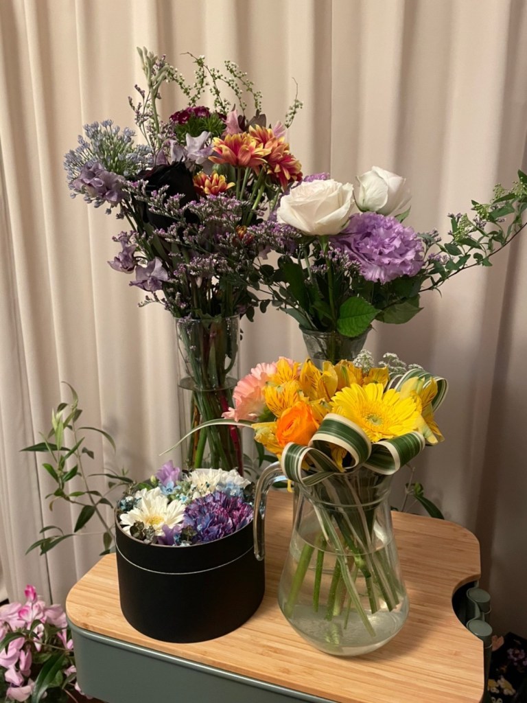 昨晩、それぞれが贈られた花を持ち帰り、家の中はとても賑やか