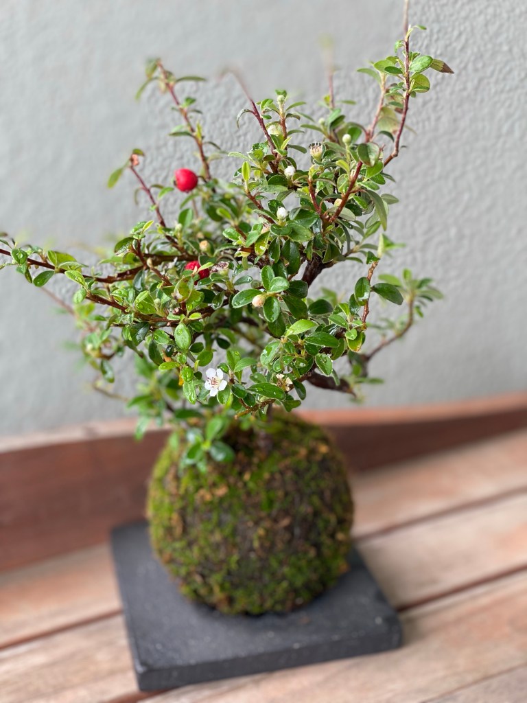 昨夏、苔玉教室で作った苔玉は間も無く一年、枯れずに四季を過ごし花が咲き、ほっこり