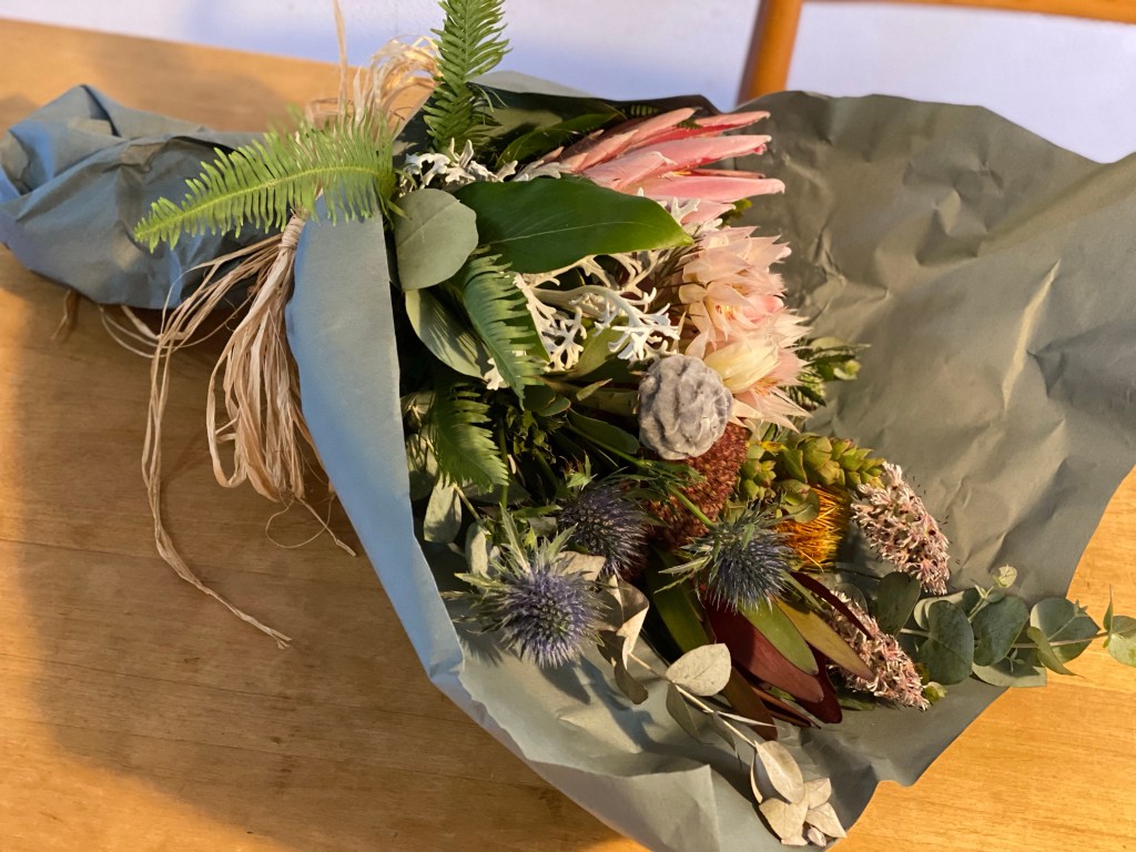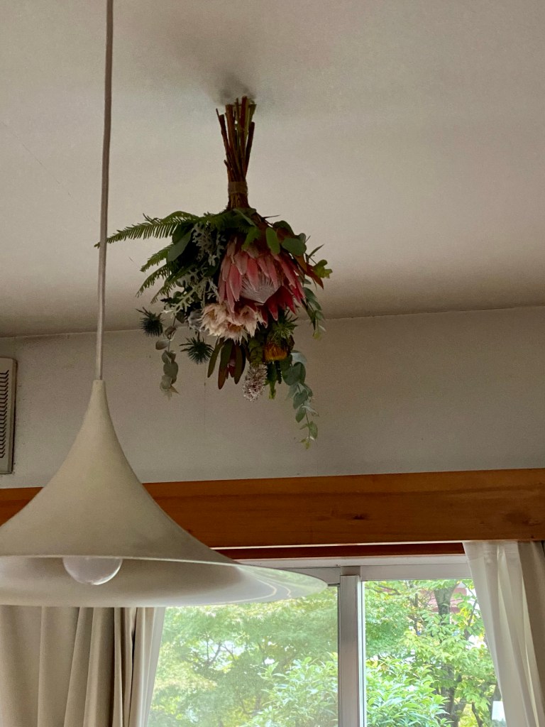 無事、二番手で並び思う存分素敵なお花たちから選りすぐりをスワッグに