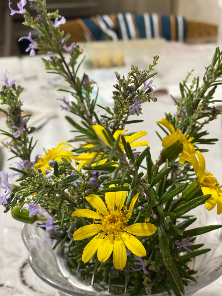 母と2人庭にでで雑草取りと草花を摘んで、母が生けた草花に癒される