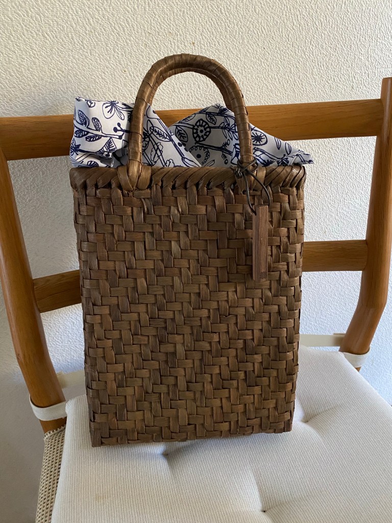 中のミナペルホネンのクロスをベネッセミュージアムのお土産に娘からもらい、クロスと一緒に使える籠を探していたら