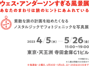 ウェス・アンダーソン監督の映画の1シーンを切り取ったような世界観を持つ300点余りの写真を、旅に関する10のキーワードで、各々の興味深いストーリーと共に紹介(企画展説明引用)