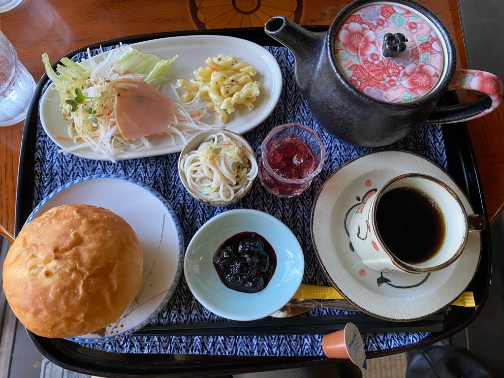 美味しいブリオッシュ風のブレッドにサラダ、素麺、葡萄ゼリーデザート付き550円