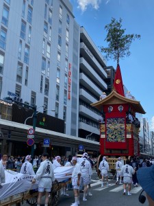 大船鉾も見事な姿、四条通は歩道が広がりすごく近い距離で観覧できる