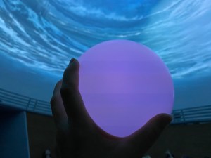 球体型のオーブを渡され、光を灯しながらドーム型シアターを見る仕掛け