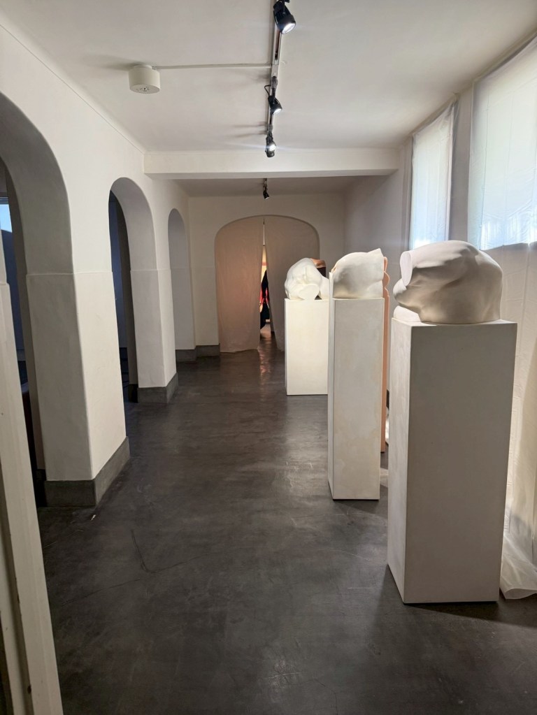美しい建物内の様々な居室、キッチン、トイレに至るまで、作品が展示され、個人宅に招かれたように、地下から三階までを巡る