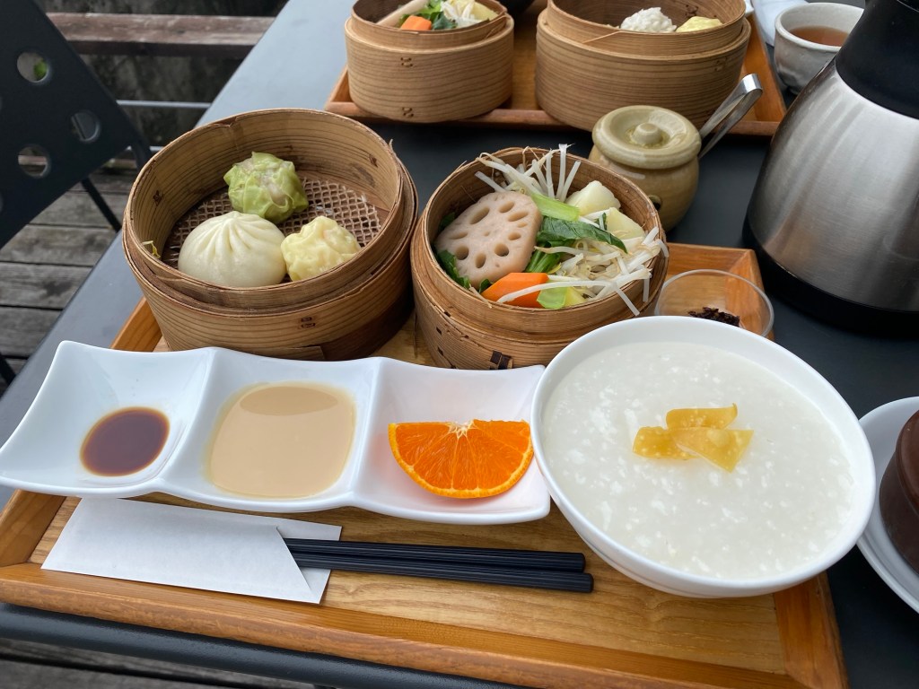 川沿いのテラス席で頂けるお野菜たっぷりのランチを見つける